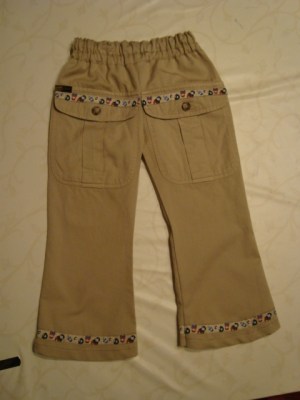 … ist ja im Moment angesagt. Aber eigentlich gibt es einfach Kleidungsstücke aus tollen Stoffen, die einfach nicht mehr passen, nicht mehr gefallen – die aber noch gut sind. So ein ausgedientes hellbeiges Jeans-Hemd meines Bruders. Ich wollte ohnehin eine neue Oona Hose nähen – die steht meiner Maus sehr gut und kann selber über den Popsch gezogen werden, was im Kindergarten wichtig ist.