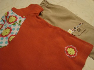 Kombiniert mit einem Miller Jersey. Und weil es dann so nackt aussah, noch schnell ein Blume ausgeschnitten und aufgebügelt, festgenäht und fertig ist das Recycle-Set!