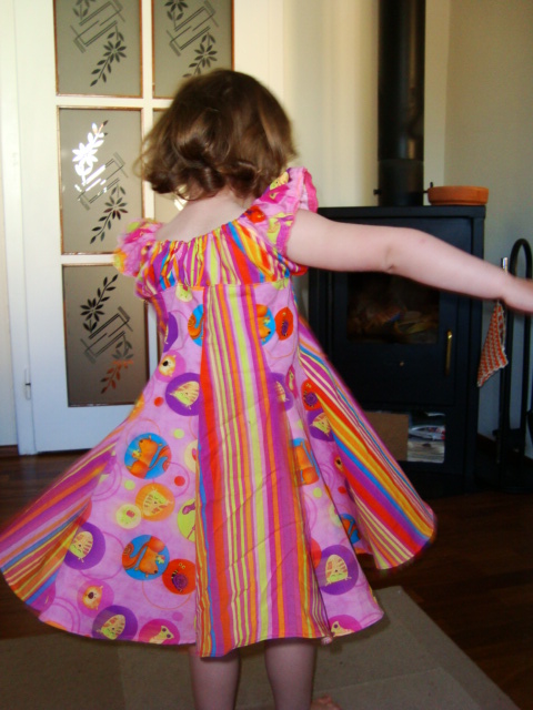 Zum Glück habe ich eine Variante mit Kordel gemacht, damit geht das Aus- und Anziehen etwas leichter, aber das Kleiderl ist ohne Reißverschluß doch etwas knapp zum Anziehen.