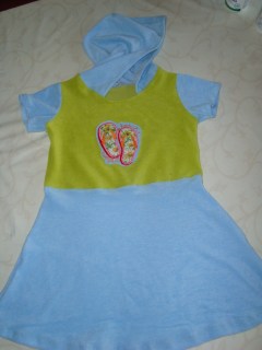 Inspiriert durch das Vernadelt-Forum, wo einige Damen ganz süsse Strandkleidchen genäht haben, ist diese Frotte – Uta entstanden. Nix aufregendes, aber nachdem wir heuer sehr viel baden in Oma + Opa´s neuem Pool sind – super praktisch und gern getragen.