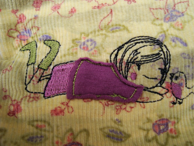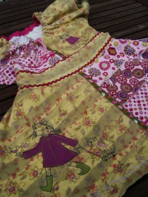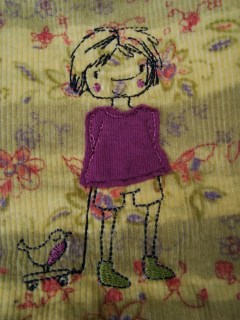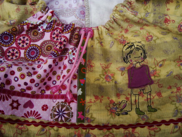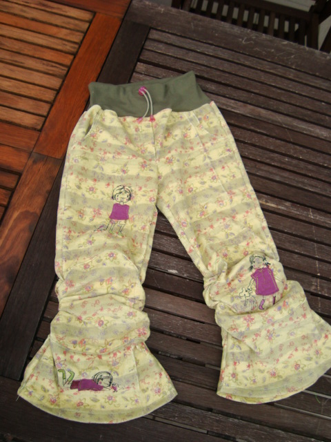 Zunächst wurde der Cord zu meiner allersten Dortje verwurstet, ich dachte mir zum Schnitt ausprobieren ist der Stoff sicherlich ok. Dann kam ich auf die Idee die Hose partiell zu besticken.