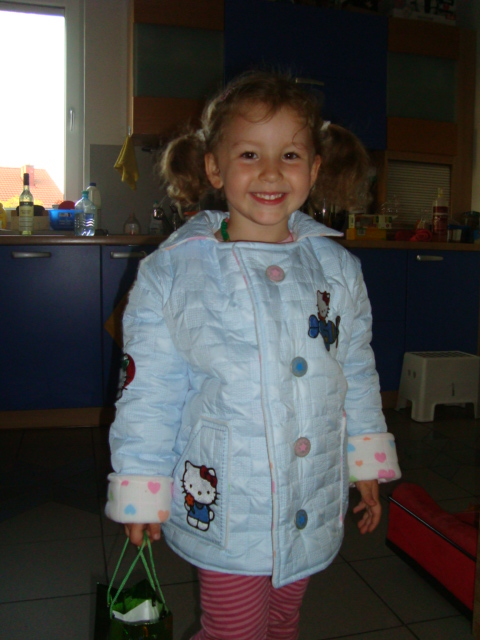 Troubles gab es nur bei der Auswahl der Stickis, da gingen die Ansichten von Maus und mir auseinander. Nachdem sie die Jacke anziehen soll, durfte sie dann doch wählen. Es wurde Hallo Katzi :-).