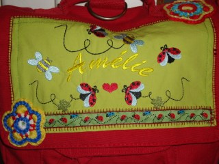 Im Sommer letzten Jahres habe ich bei Lieblingsstücke diese tolle Canvas-Tasche für den Kindergarten gekauft, aber nun entlich habe ich das gute Stück gepimpt. Gefällt, wird natürlich nur noch über die Schulter getragen, wie es die Grossen tun ;-).