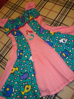 Es soll sich drehen, es soll ein Kleiderl werden – mir fällt dazu nur Elodie ein. Allerdings bei der Auswahl der Stoffe musste ich feststellen, dass weder der blaue Filze noch der das Sticki auf Filz generell zum Stil des Kleides passt. Also – schnell mal eine neue Arielle direkt draufgestickt.