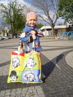 Ich durfte wieder für Angelina Probenähen – hach – ist sowas spannend! Es ist meine erste Tasche :-)!Big Billy Bag heisst das gute Stück – und sie ist echt riiiiieeeeesig! Seht mal den Größenvergleich – meine Tochter ist 106 cm hoch …