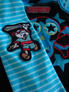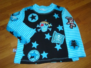 Für die Geburtstagsfeier vom kleinen L. gibt es dieses coole Piraten Shirt aus Staars Jersey von Farbenmix (Shnitt Hilde). Ich befürchte fast, dieses Shirt wird für L. zu cool sein und er wird es eventuell nicht mögen … ich bin gespannt.