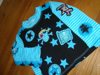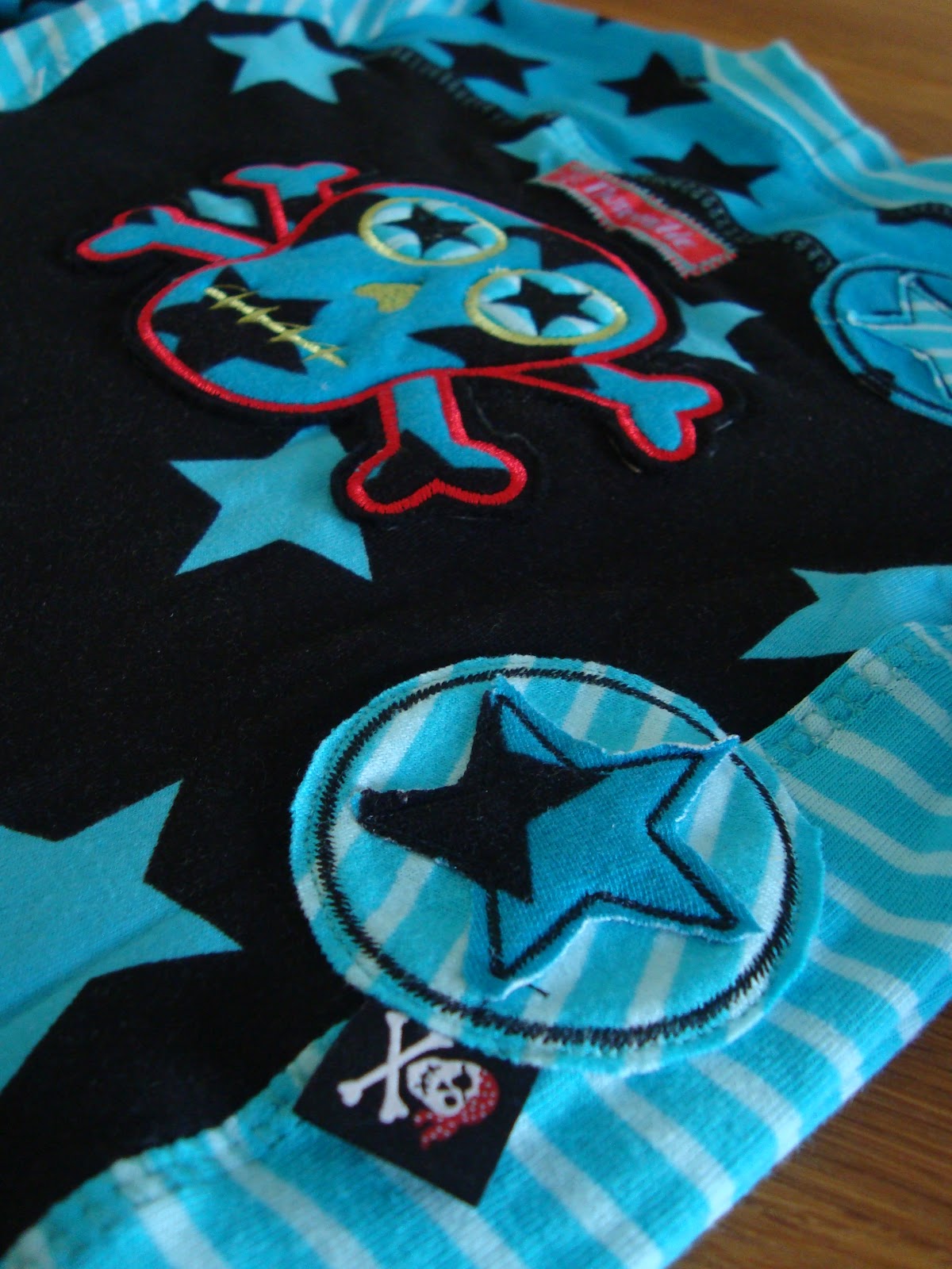 Und wer sagt, nur Mädchensachen kann man betüddeln, der irrt. Ich war ewig beschäftigt mit sticken und aufnähen, länger als mit dem Shirt nähen!