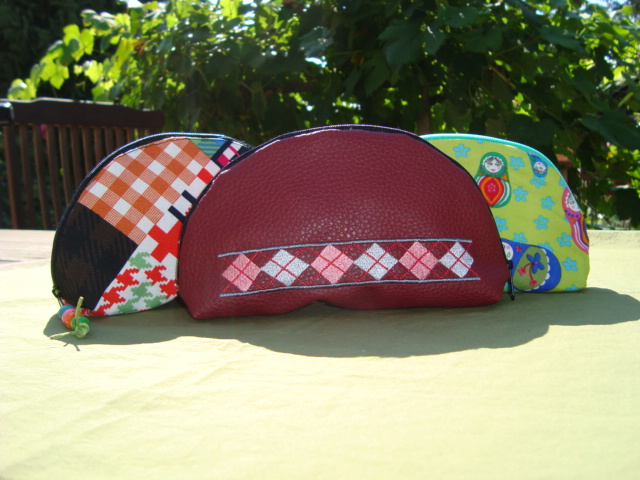 Ich finde es sehr gelungen, musste mir nach einem Teststück gleich eines passend zu meiner Handtasche nähen. Und heute wird auch gleich eines verschenkt (aus dunkelrotem Kunst-Nappa-Leder mit Bestickung – das sieht doch richtig edel aus, oder?).
