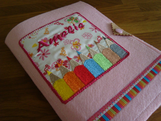 Schon beim besticken kam von Maus ganz begeistert die Anmerkung: „Da steht Amelie – das kann ich doch verwenden!“. Nun haben wir uns darauf geeinigt, dass wir auch für sie eines anfertigen – „aber Mama, mit hinten Filly drauf und vorne Hello Kitty“ 🙂 …