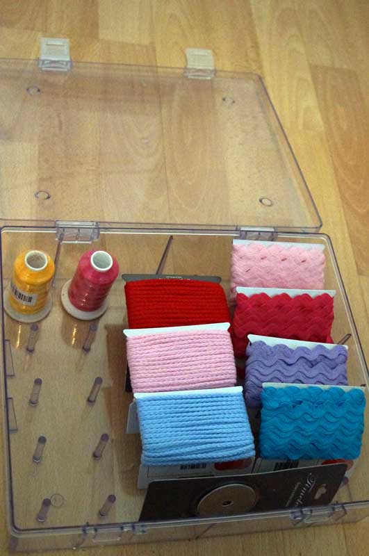 Spulenbox, 2 Stickmaschinengarne, Anorak Kordel und Zackenlitze
