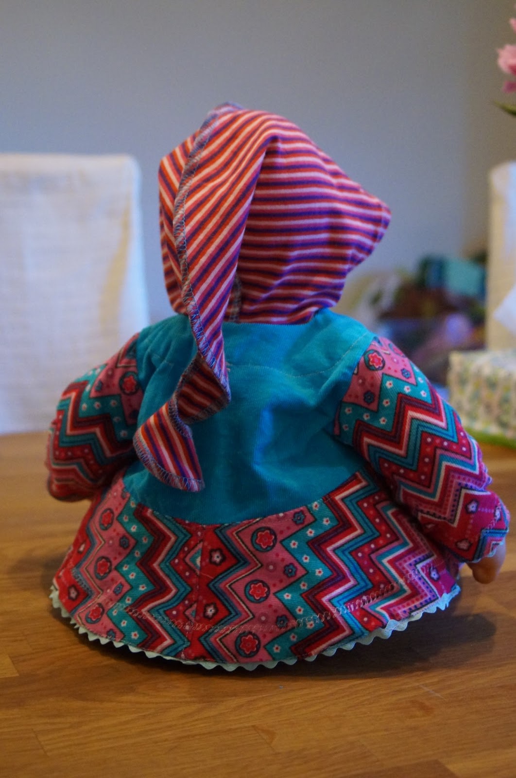 Also, die große Chou Chou hat ein Outfit bekommen nach Roos (Legging und Shirt), eine Beanie-Mütze, frei nach NupNup.