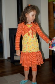… verbreitet dieses Outfit, oder? Nachdem jedes Teil, dass von der Maschine hüpft am nächsten Tagen angezogen wird, musst ich aufgrund des Wetterberichtes gestern Abend auch noch schnell ein Kerstin Westerl dazumachen.