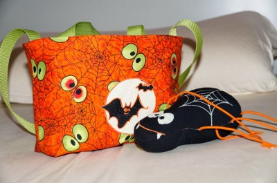 Als passendes Assessoires die Spinne Thekla von der lieben Sandra von Stickfisch! Und eine passende Tasche zum Zuckerl einsammeln!