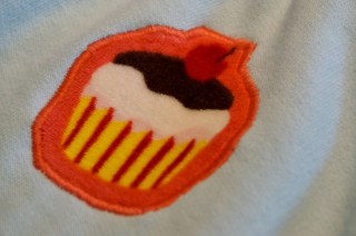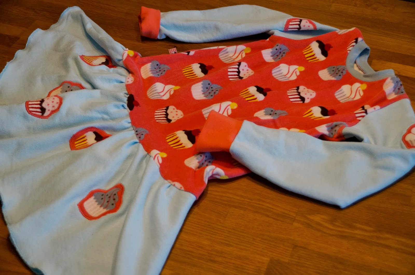 Nach meinem bewährten zusammengestellten Schnittmuster habe ich also ein schnelles Kleiderl gemacht, bestickt mit einem Muffin – ganz klar.