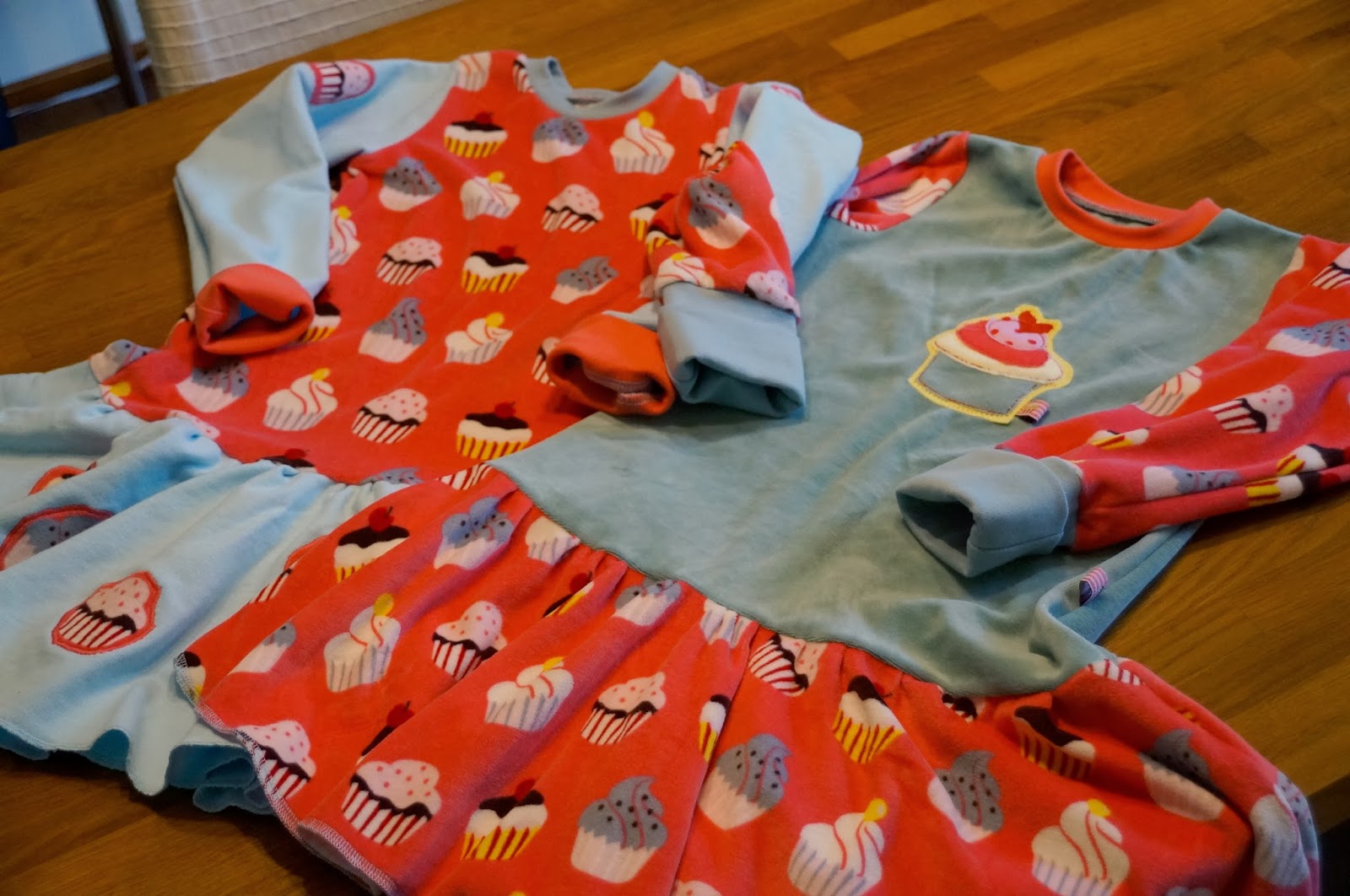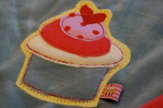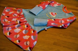 Das 2. Kleider ist teilweise aus Sweat und die Muffins habe ich am Rockteil appliziert – hat Spaß gemacht, nach so langer Zeit wieder mal zu applizieren.