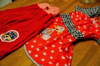 Entstanden sind ein Outfit für Buben und eines für Mäderl, möglichst so gemacht, dass ein Bandbreite von 3 bis 6 Jahren abdeckt.