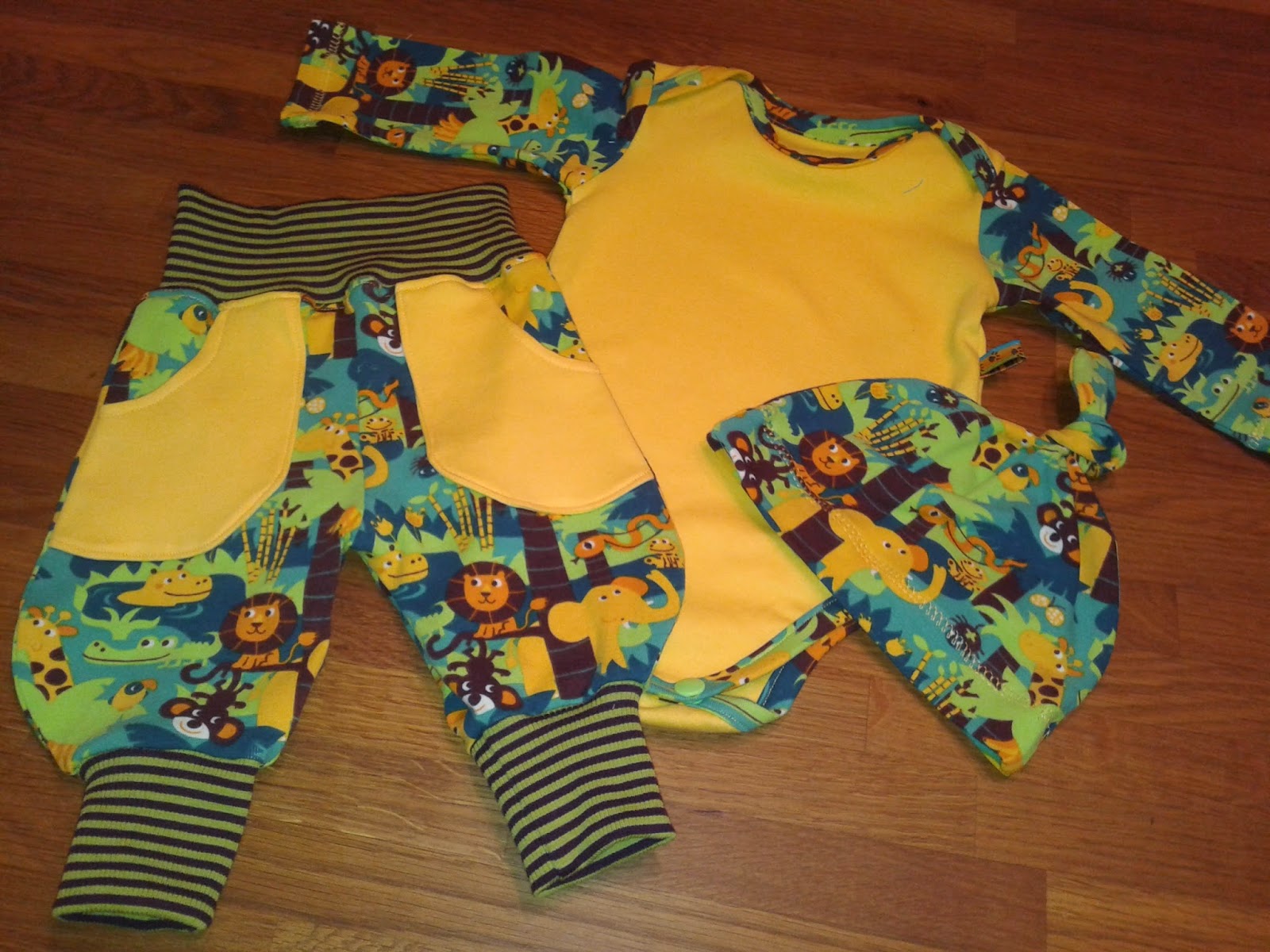 Ich habe 2 Baby-Outfits in Grösse 62 genäht, mein Gott, sowas von herzig, oder? 2 Baby-Buben sind auf dem Weg in diese Welt, ich hoffe, die Outfits werden gefallen.