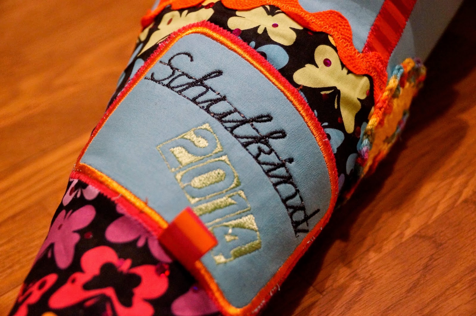 Passend zum Probekleid von der Hochzeit, was nun das Einschulungskleid geworden ist, gibt es auch eine Schultüte. Und – passend zur Rainbowstyle Week 4 von Kitz Katz Design – sehr passend!!!
