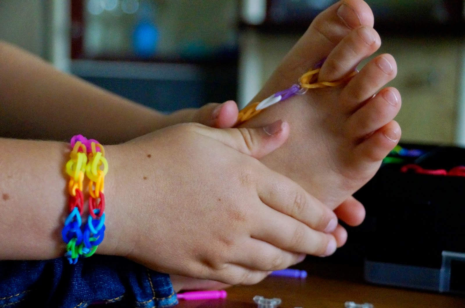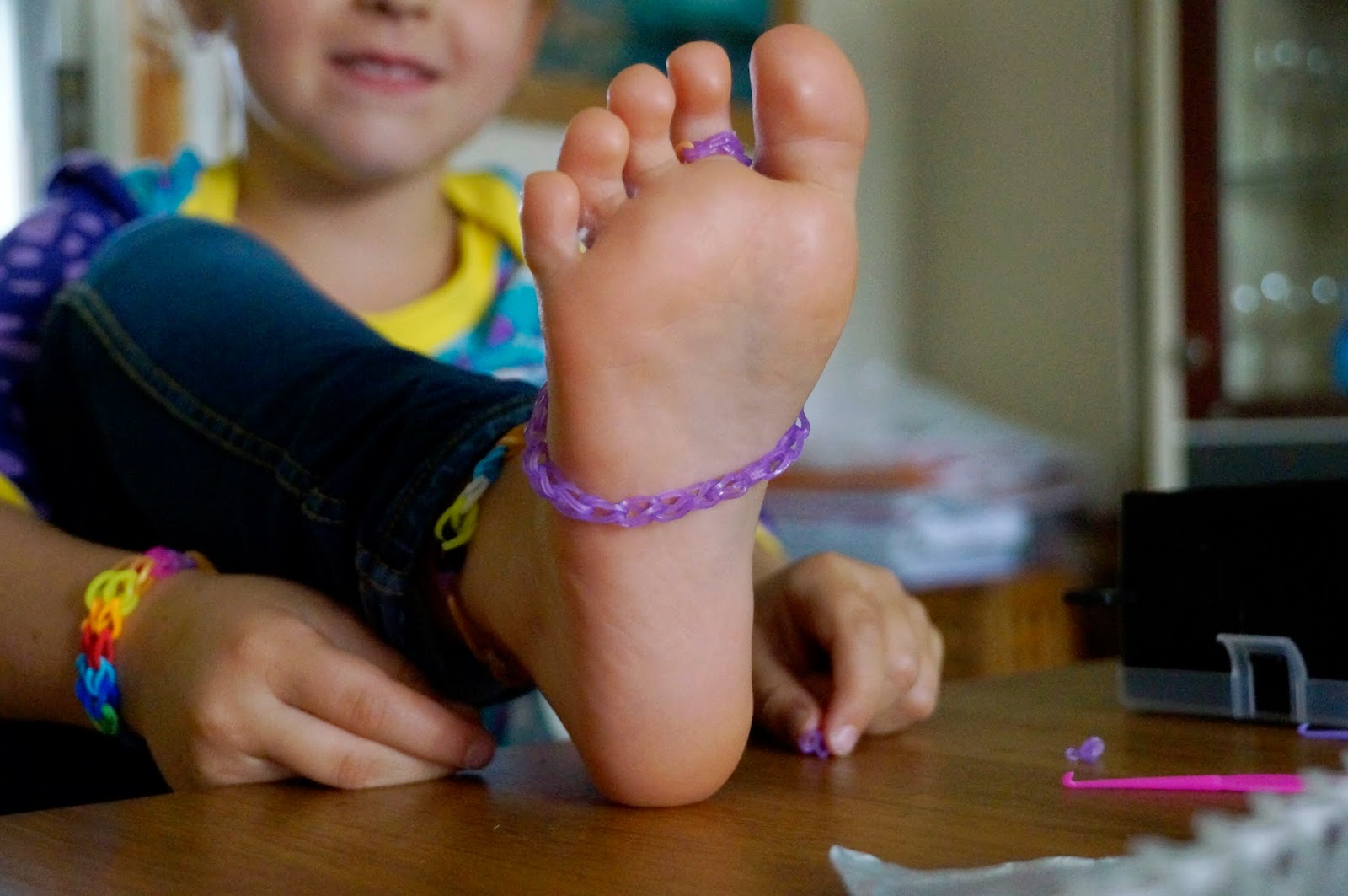 Meine Tochter hat sogenannte Sommersandalen aus Rainbow Looms in einer Facebook Gruppe gesehen. Jetzt sag einer, das Kind ist nicht kreativ! Schaut selbst, was sie einfach so gemacht hat: