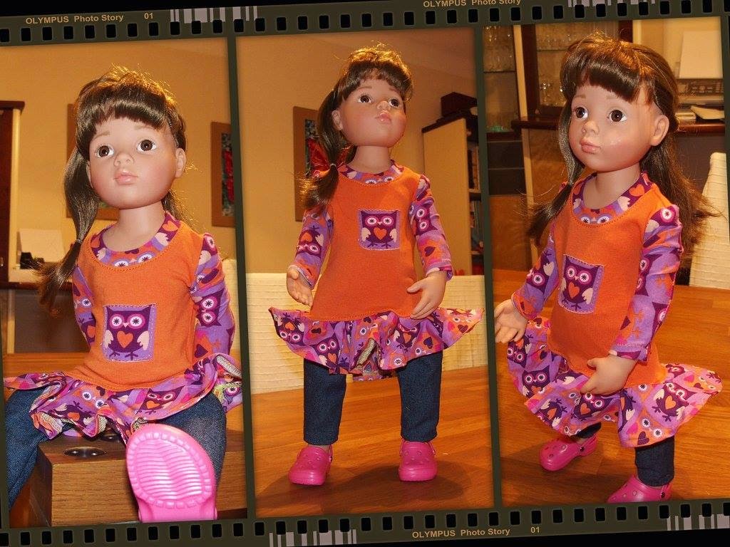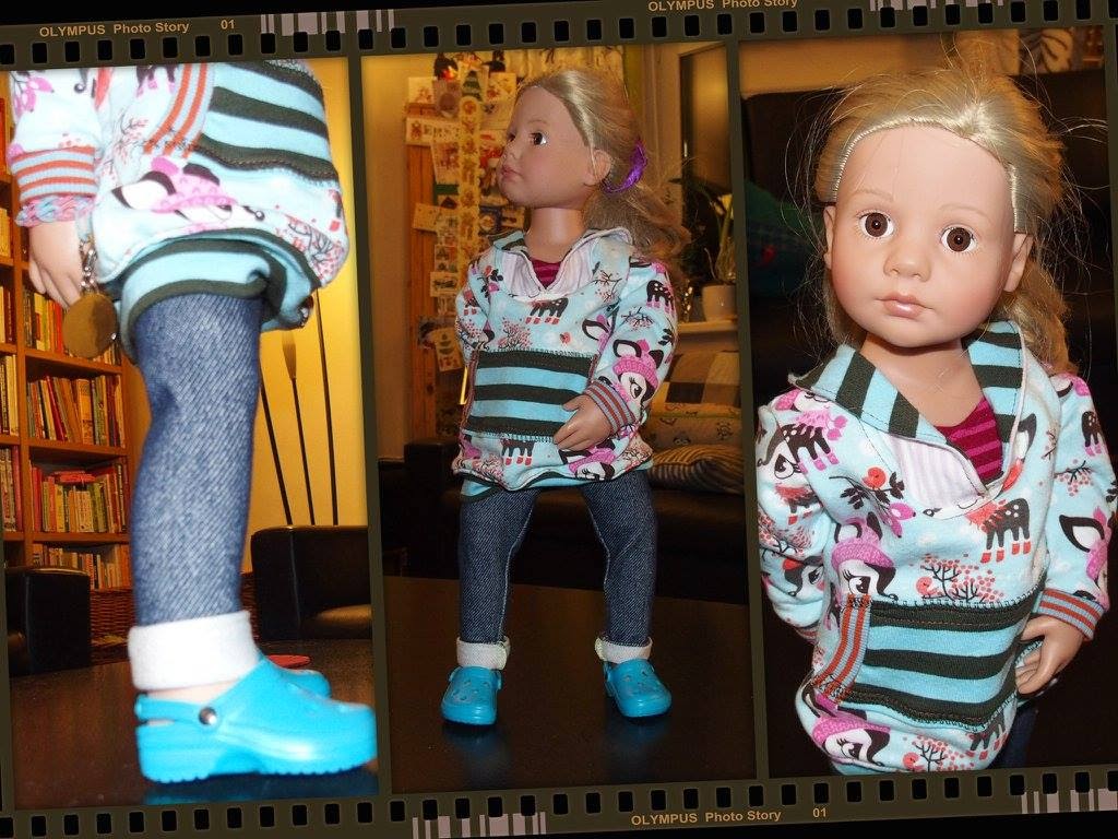 Im Moment darf sie ihr Dasein vorerst nur als Anprobepuppe fristen, aber zum Geburtstag wird sie dann mit neuem Outfit übergeben.