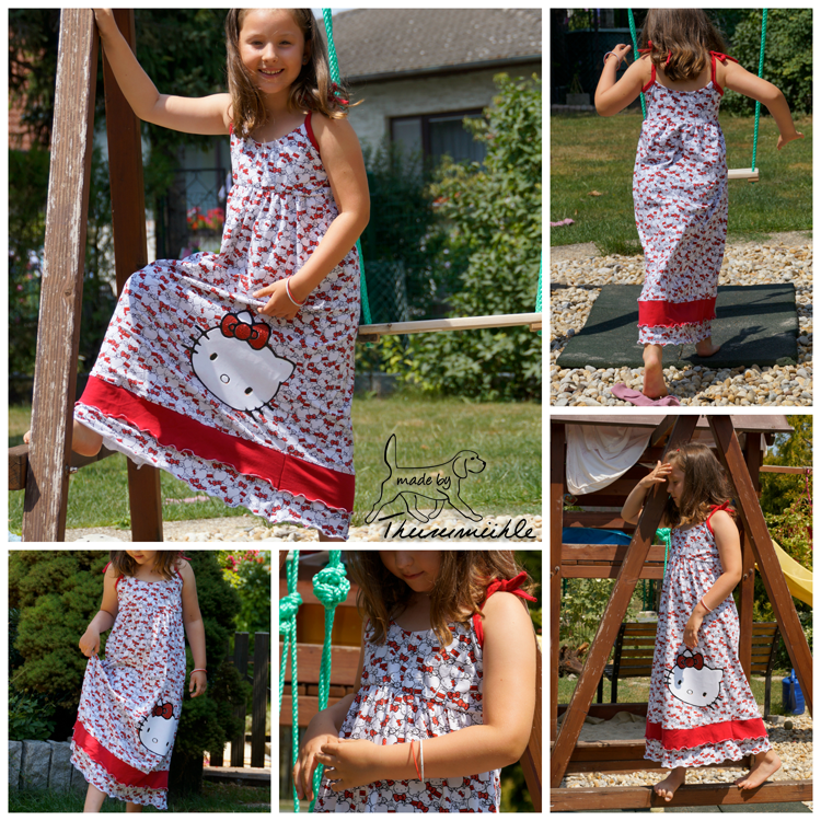 Inspiriert von den vielen Maxikleidern, die da so im Netz herumschwirren, wollte Frl. Tochter auch so ein langes Kleid. Ich war skeptisch, ob sowas denn auch praktisch wäre … bin es immer noch.