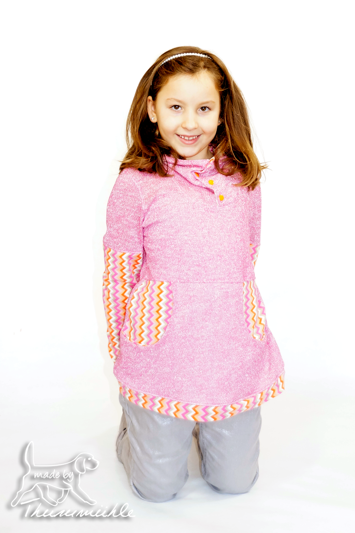 Auf der Stoffparty von Butzi Design habe ich habe ich diesen wunderbaren Mädchentraum aus pink glitzerndem Strick erstanden – ein Reststück von 1 m. Gleichzeitig hatte Phuong My ein so hübschen Strickkleidchen mit – das fand ich so hübsch.