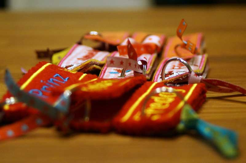 Wir haben unsere Laceanhänger mit Strasssteinchen verziert, wir mögen es, wenn es im Baum glitzert. Für die Filzvariante haben wir Silbergewebe untergelegt, damit glänzen sie auch schon.