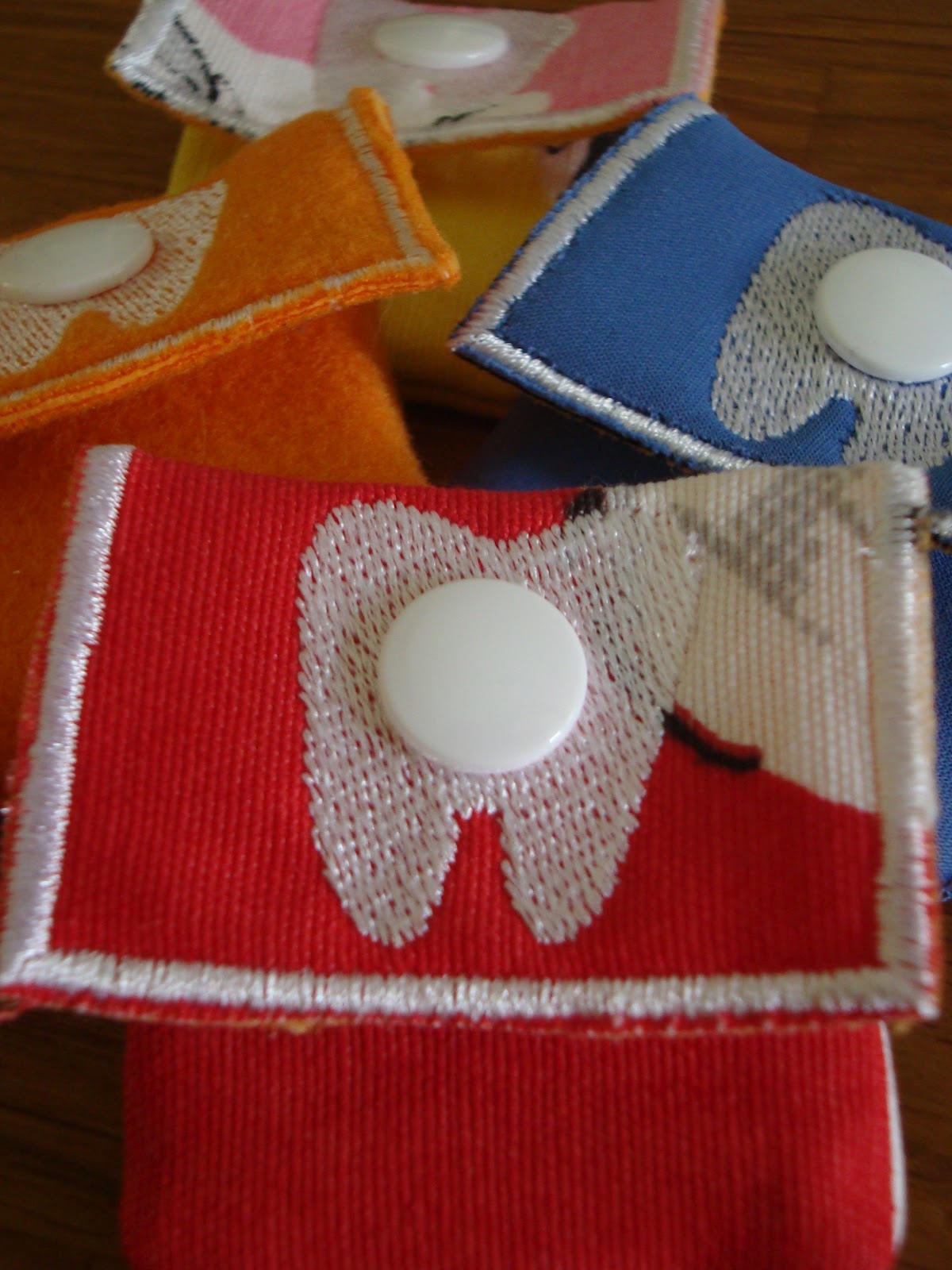 Meine Tochter hat sich alle 4 unter den Nagel gerissen und nachdem sie noch keine Wackelzähne hat, werden allerlei bunte Schätze darin aufbewahrt. Bis sie den ersten Wackelzahn hat, finden wir die Täschchen nicht mehr. Macht aber nichts – die sind so schnell gestickt, dann machen wir noch Neue!