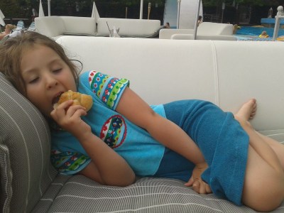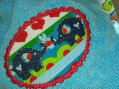 unser jährliches Badekleid (Farbenmix Uta) aus Strechtfrottee in 122/128.