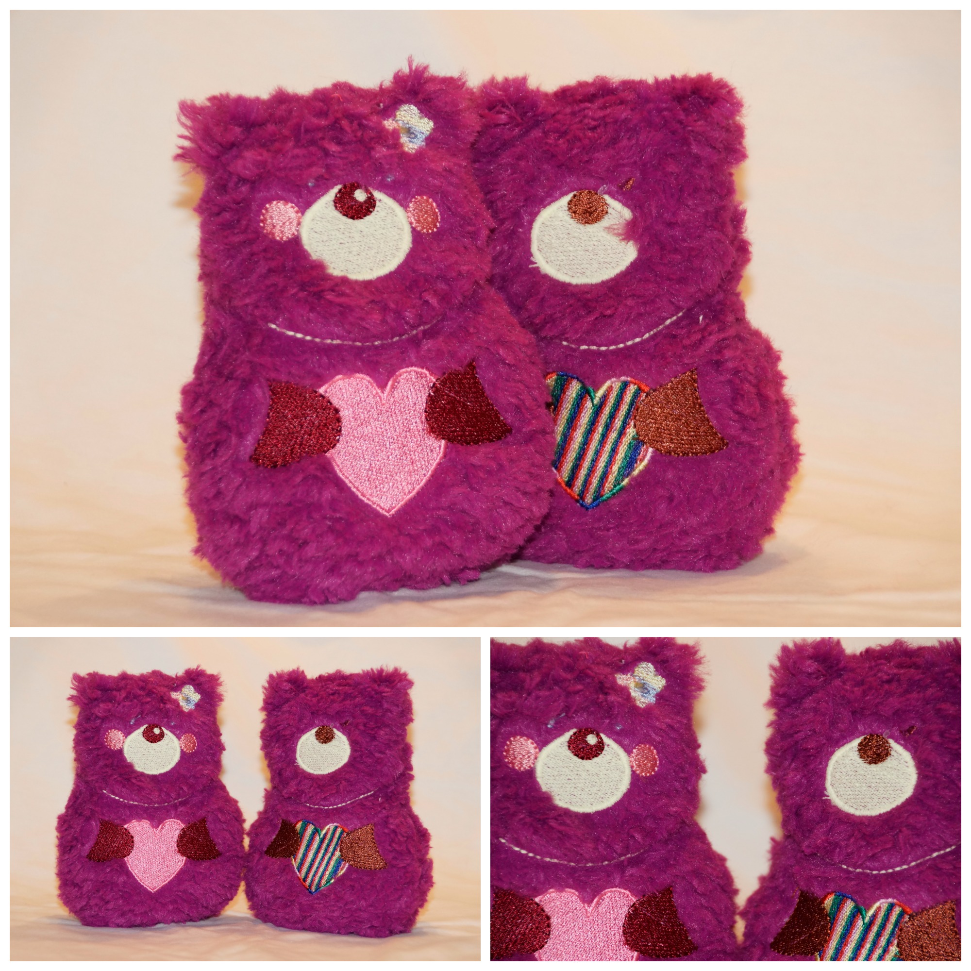 sind die beiden neuen ITH-Plüschbären von Angelina´s Creativecke. Als Stofftier, als kleines Kissen – die Verwendung ist vielseitig. Bei uns wurden sie einfach mit Füllwatte und ein bisschen Lavendel gefüllt.